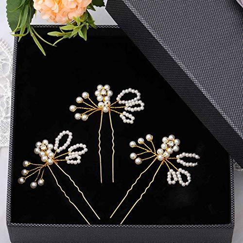 Sparkling inspired wedding hair pins with a crystals flowerpearl design.Lovely on their own, or can be worn together to look like a full comb.Size and Weight for Your Reference Weight:N.W.: 0.49oz/set - 14g/setSize:Pin Width: approx 2.75 IN - 7CMPin Length: approx 4.13 IN - 10.5cmHair pins set of 3,is handcrafted from alloy leaf beads and tarnish resistant gold wire.The embellishment is attached to a U-shaped silver hair pins, making them comfortable to wear and easy to style. Attention: Size may be 2cm/1 inch inaccuracy due to hand measure; Color may be little different due to monitor and it won\'t, fade thanks for your understanding!