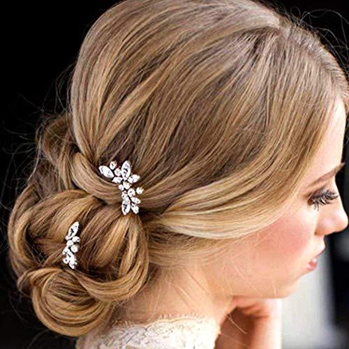 Sparkling inspired wedding hair pins with a crystals flowerpearl design.Lovely on their own, or can be worn together to look like a full comb.Size and Weight for Your Reference Weight:N.W.: 0.49oz/set - 14g/setSize:Pin Width: approx 2.75 IN - 7CMPin Length: approx 4.13 IN - 10.5cmHair pins set of 2,is handcrafted from alloy leaf beads and tarnish resistant gold wire.The embellishment is attached to a U-shaped silver hair pins, making them comfortable to wear and easy to style. Attention: Size may be 2cm/1 inch inaccuracy due to hand measure; Color may be little different due to monitor and it won\'t, fade thanks for your understanding!